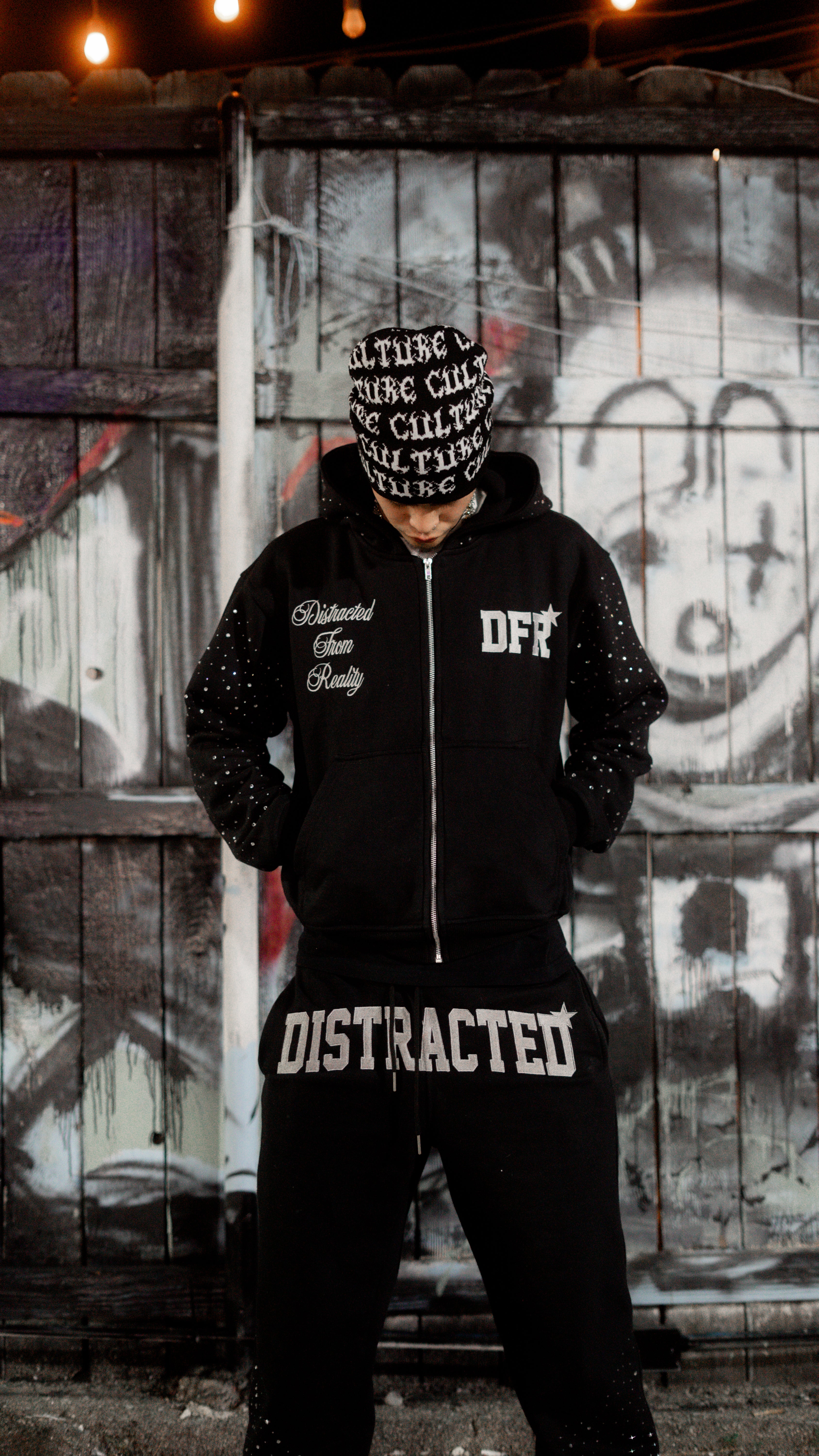 DFR Rhinestone Zip Up Hoodie Black (450 GSM)